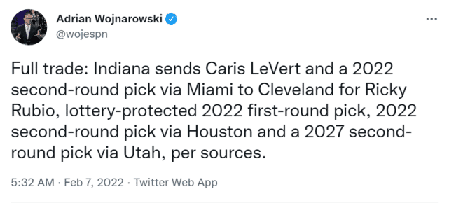 沃纳罗斯基透露,勒维尔对于这笔交易非常兴奋,因为他回到了俄亥俄的家,并加入了一支实力更强的球队。他将成为骑士的重要侧翼球员,而步行者通过交易得到了选秀签作为补偿,卢比奥是一份到期的合同。