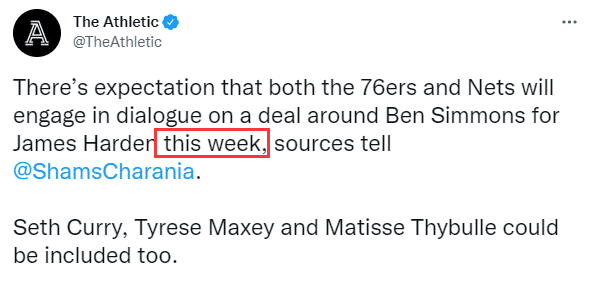 来源:24直播网02-05 19:5824直播网02月05日讯 ,名记shams爆出猛料,76人和篮网将于本周开启西蒙斯与哈登的交易谈判,篮网对此持开放态度,76人能用的潜在交易筹码包括塞思-库里、泰利斯-马克西和马蒂斯-塞布尔等球员,名记还曝光两队开启交易谈判的内幕。