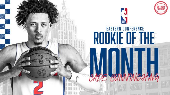 1月份,基迪场均拿到13.3分8.6篮板6.1助攻,连续三次当选成雷霆队史第一人;康宁汉姆则是场均攻下17.3分4.2篮板5.6助攻,赛季首次当选,也成为2010年后活塞队史第一人,队史第6位获得该奖项的球员。