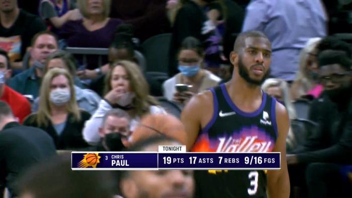 保罗创纪录,19次助攻创赛季新高,职业生涯第100次单场15+助攻,成为斯托克顿(293)、魔术师(189)、纳什(110)、奥斯卡-罗伯特森(106)之后历史第五人。