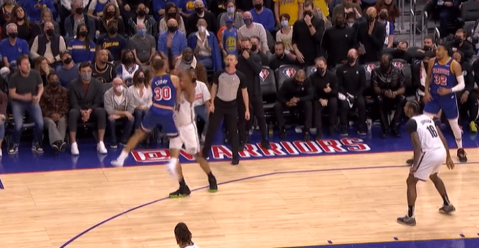 这个球其实很关键的,如果库里被吹进攻犯规的话,那么落后3分的篮网是有机会在随后的进攻回合中缩小差距甚至是抹平分差的,而且接下来的时间还有不少。但裁判给的是篮网悍将爱德华兹犯规,认为是库里造犯规成功。