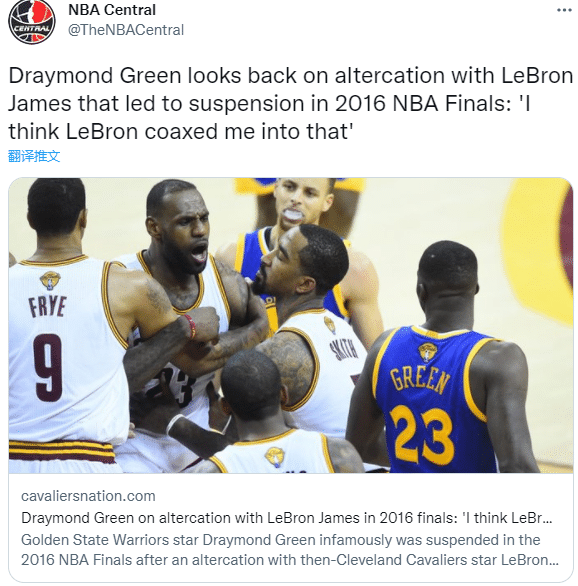 格林再谈与詹冲突!詹皇跨人是故意激怒我,输掉总决赛却得到杜兰特