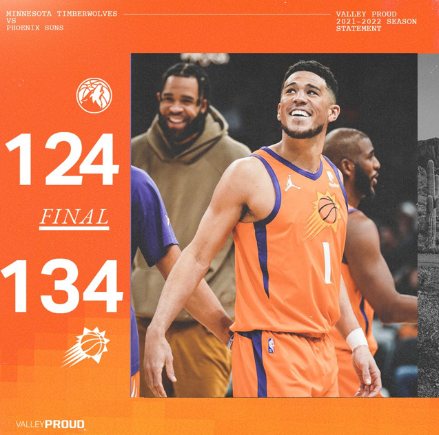 太阳134-124战胜森林狼 保罗21+10+14 布克29+9 双状元合砍50分