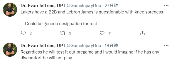 上一场湖人击败篮网,詹姆斯没有在伤病名单上,而今天对阵费城,老詹因伤被列为出战成疑,明天将客场背靠背对阵黄蜂,也许詹姆斯真的该轮休一场了。
