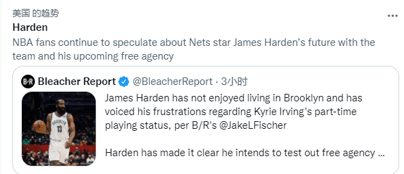 哈登已经向篮网和亲密人士表达过他对欧文兼职状态的不满,杜兰特的受伤让情况更加严重,哈登只能在篮网的主场比赛中扛起进攻的重担。