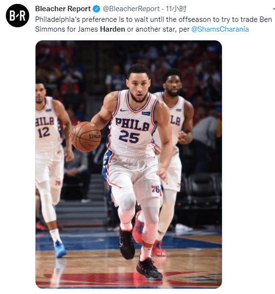 目前76人对有关西蒙斯的交易并不认真,球队的立场是不会为了交易而交易,他们只想要得到顶级球员作为回报;现在76人倾向于留下西蒙斯,等到休赛期追求哈登或其他球星。