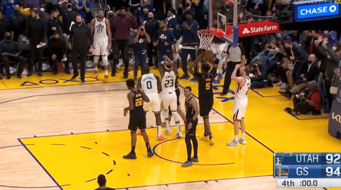 虽然三分球创造了尴尬纪录,但库里在最后时刻还是做出了自己的贡献。当时博格达诺维奇的三分球没有投进,奥尼尔补篮也没有打进,而在篮下防守奥尼尔的正是库里,如果没有库里的卡位和防守,奥尼尔会获得轻松补篮绝平的机会。