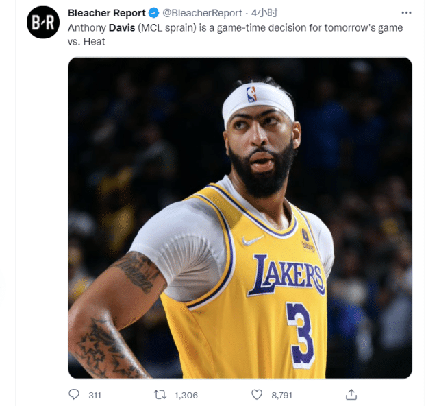 24直播网01月23日讯 湖人明天将客场挑战迈阿密热火,消息报道,浓眉哥出场状态已升级为出战成疑,有50%的可能迎来复出!因为左膝内侧副韧带拉伤,浓眉哥已经缺席湖人过去16场比赛,而戴维斯的回归,意味着紫金军团将在攻防两端迎来回暖!