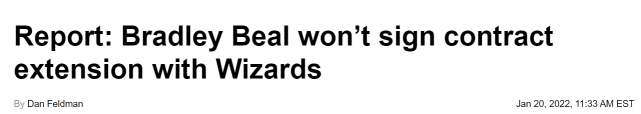 如果奇才决定交易比尔,他们也有两种选择,一种是交易截止日前行动,另一种是等到比尔成为自由球员后先签后换。无论哪种方案,交易市场都会增加一条大鱼。