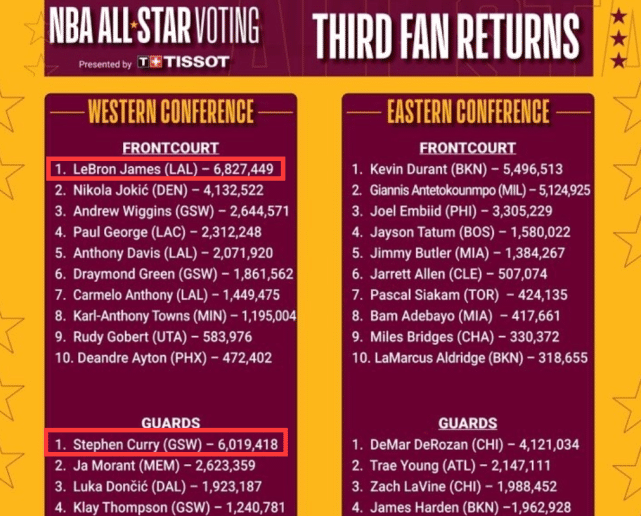 第9次票王稳了?连续5年票王不是盖的!詹皇2周净胜库里137万票!