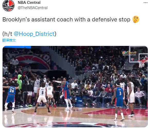 争议!篮网助教伸手破坏奇才进攻,库兹马指人抗议裁判却说:我没看到