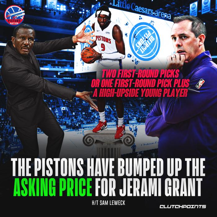 此前活塞用格兰特+萨迪克-贝+奥利尼克+一个首轮选秀权报价西蒙斯,但费城对这样的交易并没有什么兴趣;目前活塞对格兰特的要价是2个首轮选秀权或者一个首轮选秀权外加一位潜力高的年轻球员。