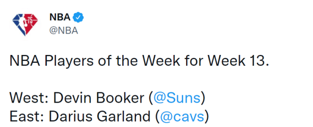 你的位置: 24直播网 篮球直播 NBA NBA官宣周最佳!骑士新星生涯首获殊荣,布克本赛季第二次当选