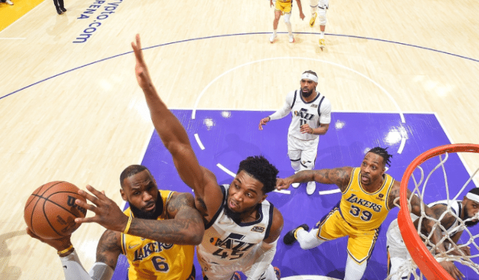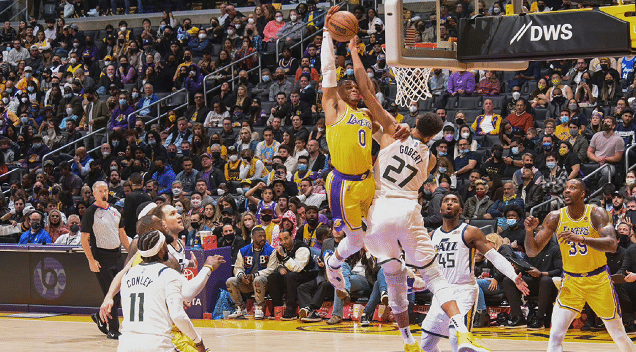 24直播网01月18日讯 今天NBA常规赛结束了一场焦点战,湖人主场101-95逆转击败爵士,此役上半场领先6分的湖人在第三节一度险些崩盘,被对手单节净胜12分。好在末节替补奇兵斯坦利-约翰逊站出来连续砍分,詹姆斯也表现出色,威少打成关键2+1,湖人成功拿下胜利。詹姆斯25分7篮板7助攻,依旧相当稳定。威少15分8篮板3助攻的数据虽然不亮眼,但上半场隔扣戈贝尔相当霸气,末节也打进关键球。斯坦利-约翰逊15分,其中末节得到10分,是湖人赢球的功臣。