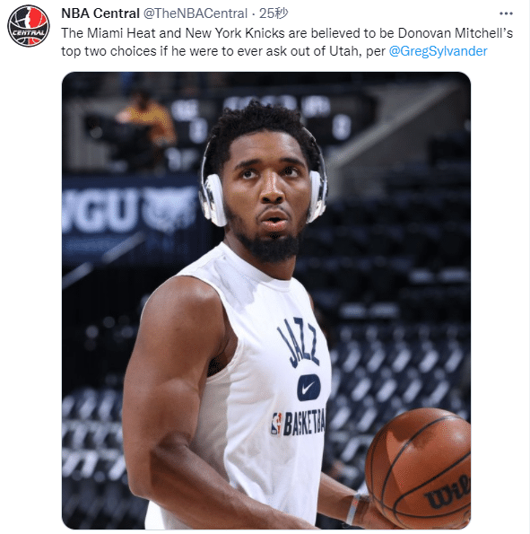 最近爵士战绩不佳,米切尔不仅陷入不满球队市场的流言之中,而且有记者报道,若米切尔申请离队,他最想去热火和尼克斯,纽约和迈阿密都是大城市。