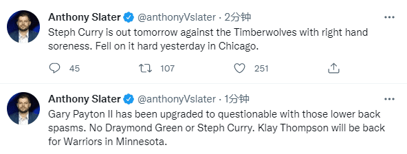 下一场对阵森林狼,库里因伤休战,本赛季第4次缺席比赛。医学专家Nirav Pandya跟进报道,库里大概需要3-5天的恢复期。