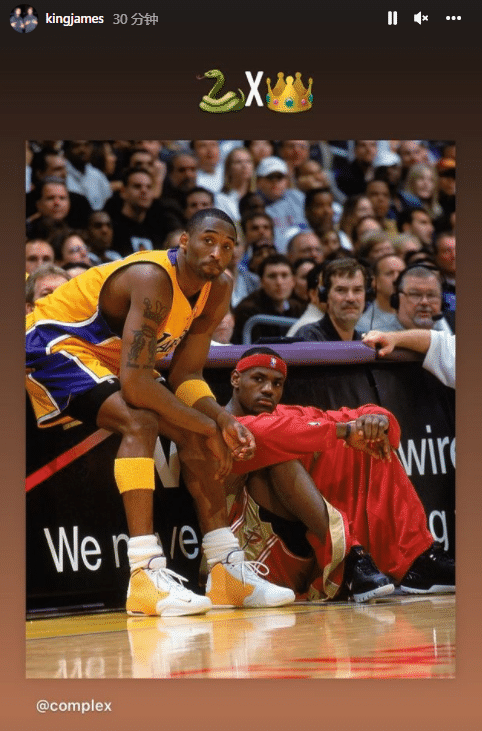 另外值得一提的是,湖人对阵国王赛前,詹姆斯转发自己与科比生涯首次交手的合影,并且配上黑曼巴和国王的表情,今天是詹科NBA生涯首次对决18周年的日子。