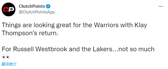 来源:24直播网01-11 09:4824直播网01月11日讯 ,美媒CLutchPoints对比汤普森和威少的数据——汤普森时隔941天重返赛场,首秀17分;过去两场比赛,威少总共拿到15分;美媒晒对比图并且发推写道:随着汤普森的回归,勇士的情况变得更好,对于威少和湖人来说,他们的情况很不好。