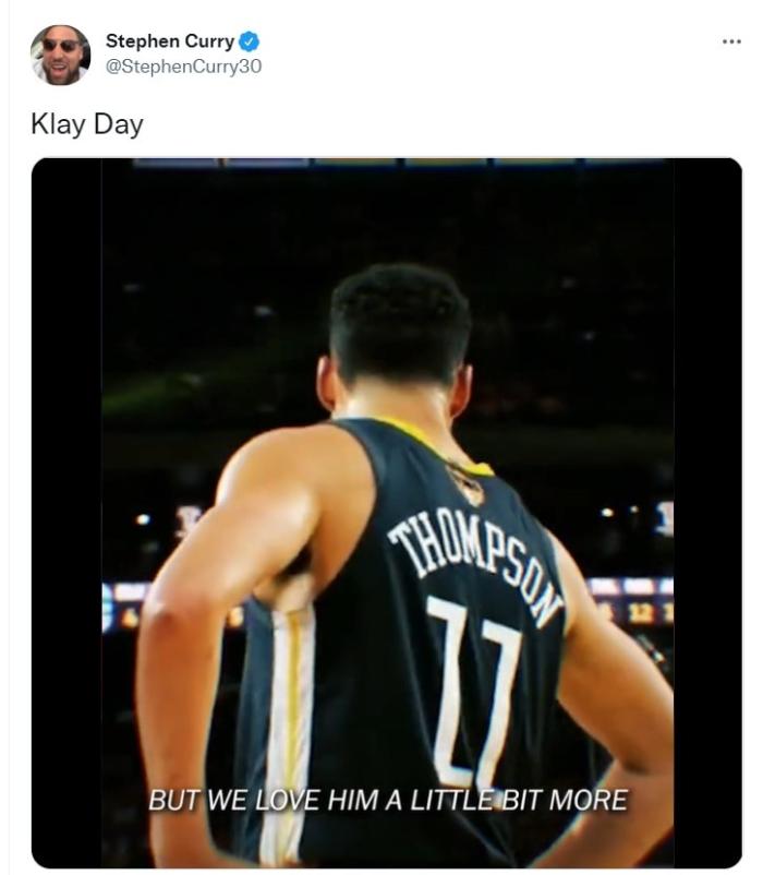 库里发推“克莱日”而在接受采访时他也表示,他很兴奋人们在讨论克莱回归后勇士重回争冠行列,但作为朋友现在只是单纯地为他重返球场而高兴,庆幸他重回正轨,期待大通中心山呼海啸的欢呼声!