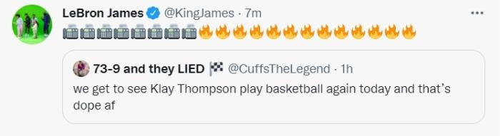 你的位置: 24直播网 篮球直播 NBA 勇士全队穿克莱球衣入场!老詹打Call+贝弗利发推,KD:祝他一直健康!