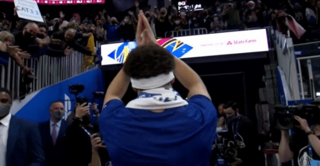 克莱回到更衣室的时候双手合十,感谢来到主场支持自己的球迷们,非常暖心。