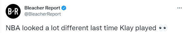 来源:24直播网01-09 15:3024直播网01月09日讯 ,勇士球星克莱-汤普森正式宣布复出,时隔941天终于确定复出,勇士官方直言等待终于结束;那么汤普森缺席期间,联盟发生了哪些变化?美媒B/R晒照并且发推写道:上次克莱出场时,NBA看起来和现在大不相同。