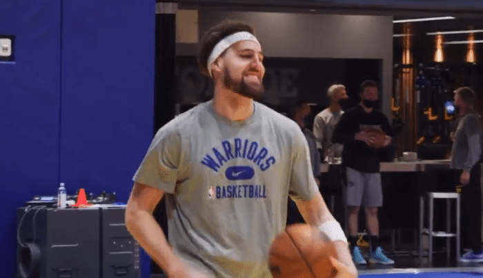 勇士训练库里连线汤神曝光!击掌撞肩表情严肃,美媒:将近千天没见了