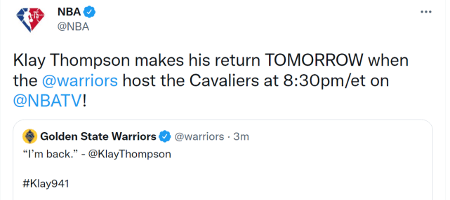 汤普森宣布复出!库里第一时间换头像表达心情,941天等待结束