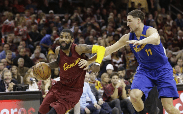 欧文和汤普森在生涯交手中也相当有缘分了,两人在2015-2017年连续3次在总决赛碰面,在2016年的年终大战中,欧文还在克莱面前投进了制胜中距离。