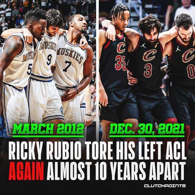 第三重现,是时隔10年,可怜的卢比奥又遭遇左膝前交叉韧带的伤病,clutchpoints写道:“2012年,卢比奥就是在这个位置上受伤了,祝福他这次能早日康复。”2012年3月,当时效力森林狼的卢比奥左膝重伤,在两位队友搀扶下离场,他当时用了9个月才复出。2021年12月底,目前效力骑士的卢比奥同一位置重伤,也在两位队友搀扶下离场,这一次他要多久才能康复呢?