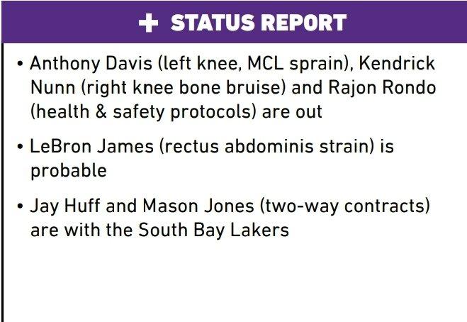 湖人公布最新伤情!朗多仍在大名单上,老詹大概率出战或复仇森林狼