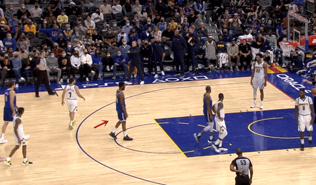 或许是将18分认为是自己腰疼线,在对阵掘金队的比赛中,维金斯急中生智的一幕也是让现场的裁判哭笑不得。比赛来到第三节末端,勇士的库明加被犯规,这个这家伙愁得,要知道此前他已经8罚2中,篮筐都快被打歪了。