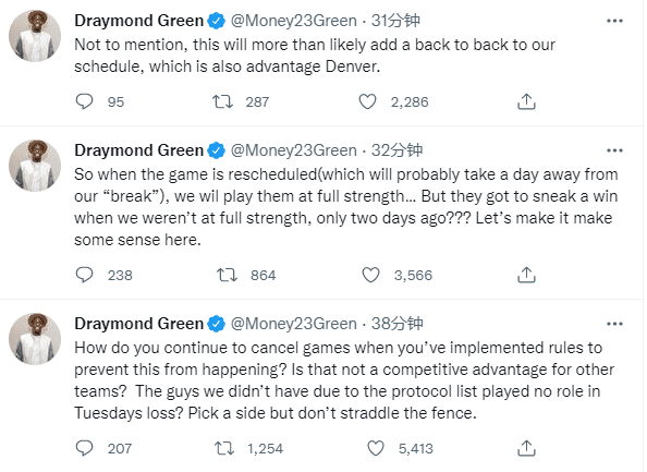 格林不满勇士掘金比赛延期,炮轰联盟不公平!汤普森:NBA干得好