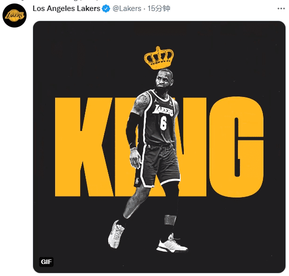 湖人官方第一时间恭喜詹姆斯破纪录,直呼其为国王。