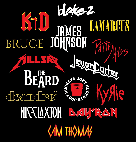 克利夫兰属于是摇滚之城,所以一名女球迷设计了篮网全队的摇滚版名字,很应景,当然这名女球迷的设计也堪称满分。可以看到杜兰特的“KD”中间还有一把死神的镰刀,詹姆斯约翰逊的名字做得非常霸气,闪电形状的托马斯,非常写意的米尔斯,卡特的设计也想到到位。