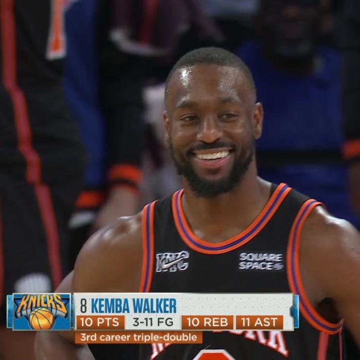 末节6分13秒,沃克抢到第10个篮板,从而拿到三双创纪录,当时沃克露出灿烂的笑容,带队赢球并且拿到三双太开心,麦迪逊花园球馆为他热烈欢呼。
