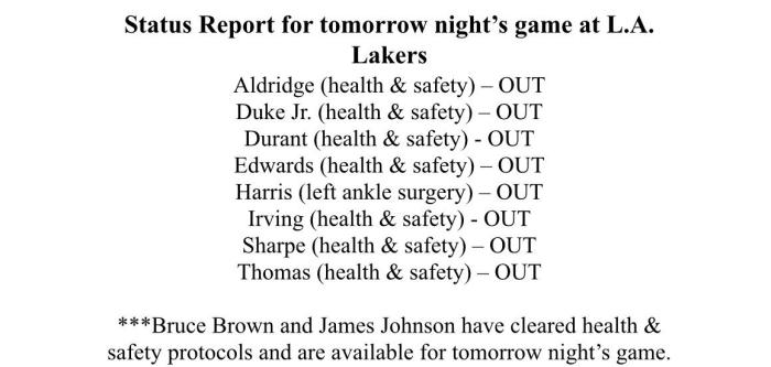 篮网年终大战13人名单出炉!三巨头仅剩哈登,杜欧领衔8人缺战湖人