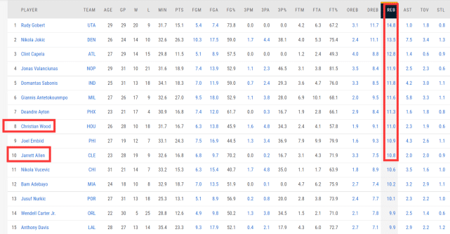 实际上,场均篮板排在第7的艾顿也来自巴哈马,伍德以场均11个篮板排第8,是美国本土球员篮板最高的,第9的恩比德来自喀麦隆,第10则是贾莱特阿伦。也就是说,本赛季场均篮板榜前十,只有伍德和阿伦这2名美国本土球员。