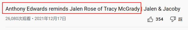 来源:24直播网12-18 15:3124直播网12月18日讯 ,在最新一期的播客节目中,前NBA球星贾伦-罗斯聊到了森林狼的状元安东尼-爱德华兹。罗斯指出爱德华兹常常上演疯狂的扣篮,而且现在三分能力越来越强。“我们曾说过他像卡特,但其实他更让我想起麦迪,当然,他的个子没有麦迪那么高,但他冲击篮筐的凶猛程度和超强的得分能力,确实让我想起了T-Mac。”