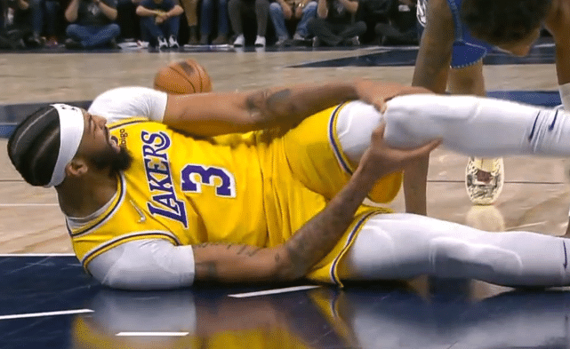 首节比赛,浓眉哥突破传球后失衡摔倒,右脚踩到对手出现崴脚情况,随后一直捂着自己的右脚踝,并且回到了更衣室。但是在第二节后半段,戴维斯回到了场上,看上去崴脚情况并不严重。