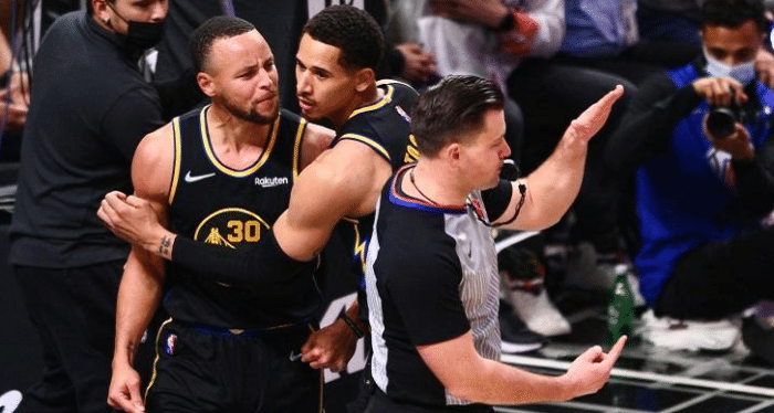 搞笑!库里造三分犯规,外国球迷调侃:裁判喝假酒or联盟改规则?