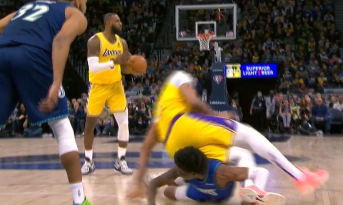 老詹闯下大祸!隔空一击撂倒浓眉,AD疼到龇牙咧嘴,走不了路了