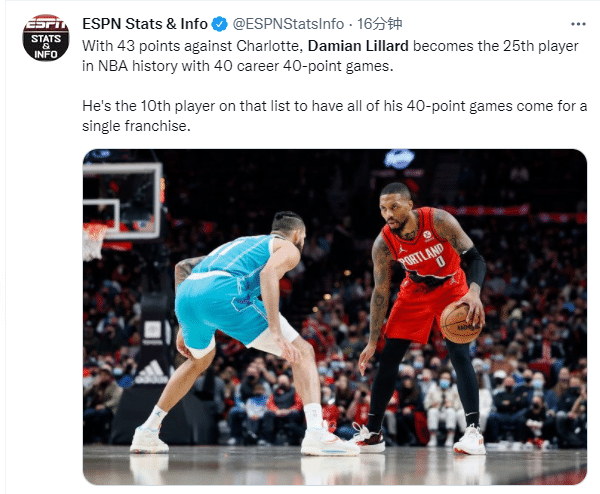 第二、利拉德职业生涯第40次40+,继续刷新开拓者队史第一纪录,比队史第2、3和4名之和38次40+还多。
