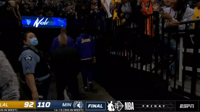 湖人输球后,詹姆斯扭头沮丧离场,威少把自己的球鞋扔给现场的球迷,小托马斯则是拥抱唐斯;拿着一份十天短合同,1米75小托马斯用进攻来弥补自己的防守不足,进攻端依旧很犀利。