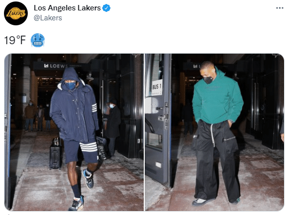 !湖人官方晒入场照,36岁詹姆斯零下7度仍穿短裤配上冷得发抖表情