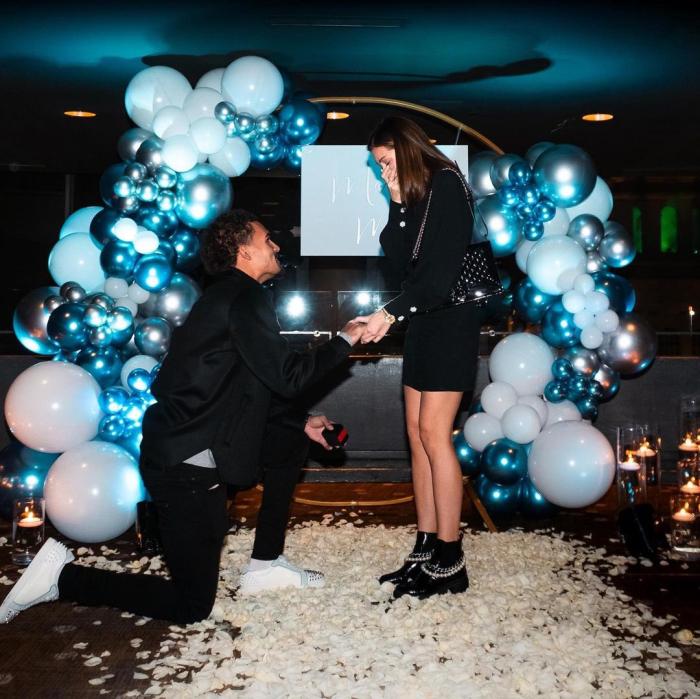 在求婚现场,特雷-杨很浪漫,布置了很多气球、蜡烛,地上撒满了花瓣;特雷-杨给了女友一个很大的惊喜,单膝跪地正式求婚时,特雷-杨的女友都快感动哭了。