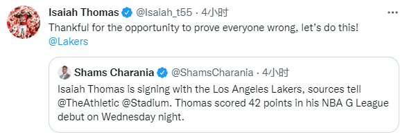 证实重返湖人!小托马斯发声:感谢湖人给我机会来证明所有人都是错的