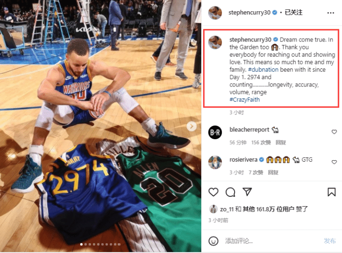 库里还晒出自己带着印有“2974并且还在继续”纪念帽的画面,并且晒出属于自己的纪念球——篮球上写着2974以及破纪录的日期,写着历史最伟大射手,还有亲笔签名。