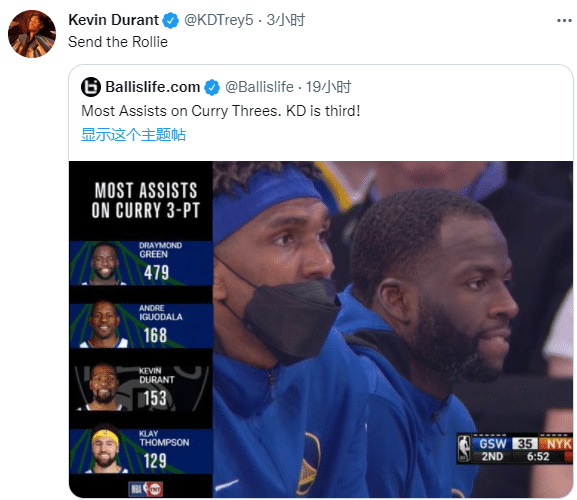 昨天篮网击败猛龙赛后,杜兰特发推恭喜库里破纪录,直呼其为三分之神。