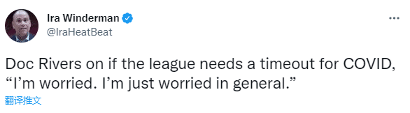 NBA是否会因疫情而停赛,76人主帅道格-里弗斯表示:我很担心,总的来说,我就是对此非常担心。老里还表示他可以预见NBA或许会回到上个赛季的规则当中(限制球迷入场等),但那会变得非常无趣。